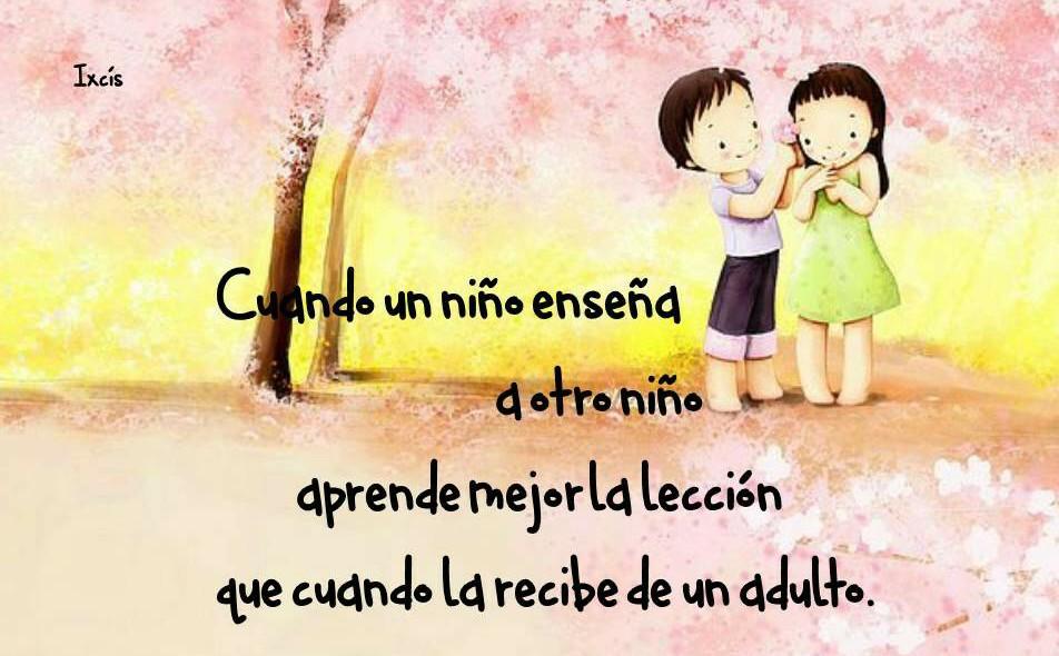 Cuando un niño enseña a otro niño aprende mejor la lección que cuando la recibe de un adulto.